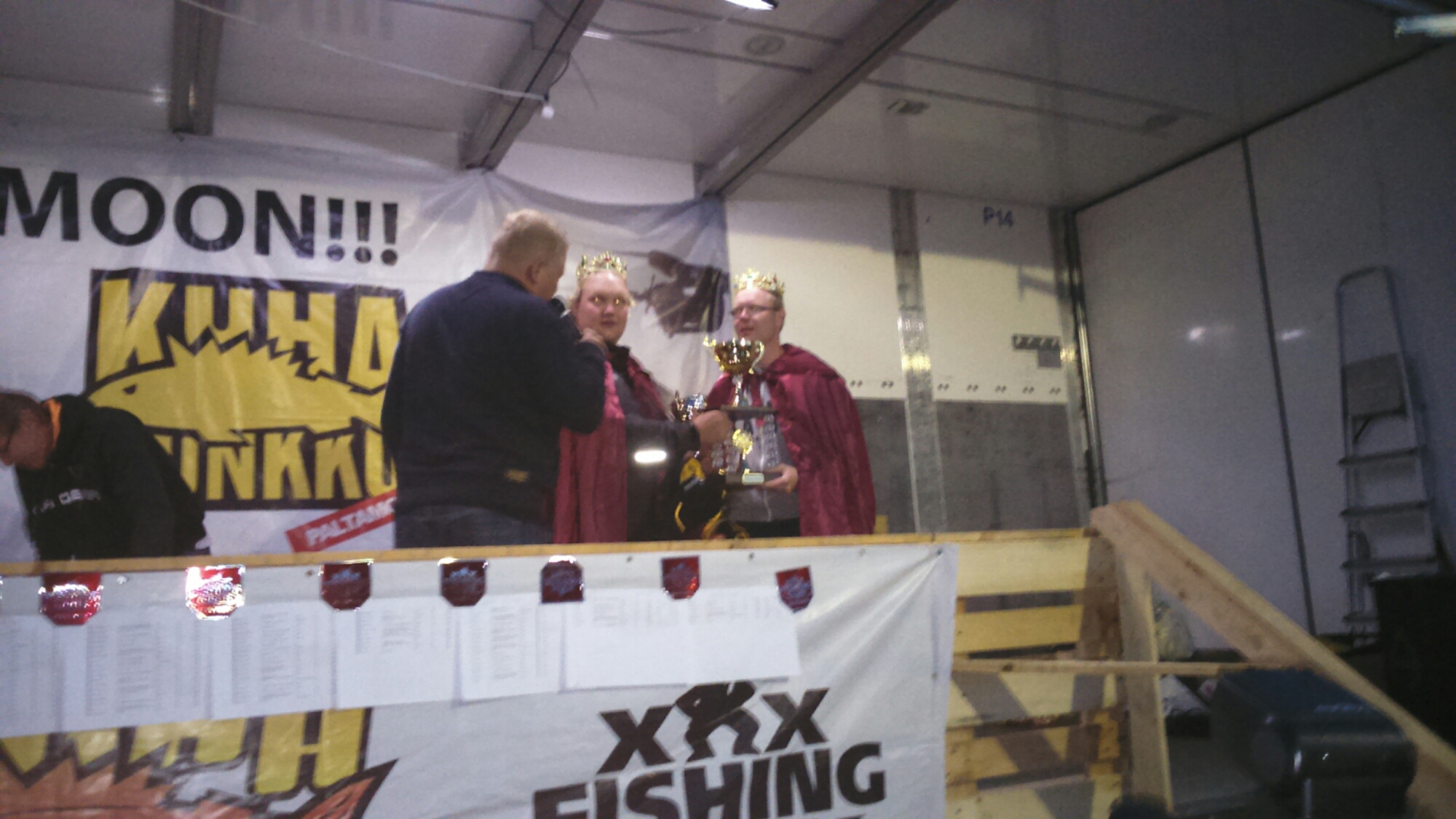 Treenauksen johdosta vene oli jo valmiina Nilsiässä, joten saimme nukkua hieman pidempään, mutta kuitenkin perinteisesti edellisen yön töiden johdosta unet jäivät noin kolmeen tuntiin. Kun pääsimme Antin kanssa kisakeskukseen, oli Tomi jo valmiina paikalla ja hoitanut ilmottautumisen. Aiemmin kaudella huomasimme, että uistinkokoelmamme on päässyt toistuvan pohjaan jäämisen seurauksena hieman hupenemaan, niinpä Tomi toi tullessaan helpotusta asiaan uusien Isluren tuikkareiden muodossa.
