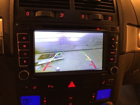 Auton vaihdon myötä tuli ajankohtaiseksi soittimen päivitys. Auton vakiomankkaan ei saanut liitettyä kiinni mitään ulkopuolista lähdettä, joka nykyaikana on melkein välttämättömyys. Soittimia selaillessa valinta osui Erisinin valmistamaan androidpohjaiseen kosketusnäytölliseen soittimeen. Erisinillä on valmiiksi Touaregiin tehty soitin ja android pohjaisena siihen voi play-kaupasta ladata haluamiaan sovelluksia, esimerkiksi Spotifyn saa ladattua suoraan soittimeen. Tämän lisäksi siitä löytyy mm. bluetooth, dvd soitin, usb ja liittimiä reilusti. Jo edellisen auton kohdalla oli mielessä asentaa peruutuskamera ja nyt sitten päätin toteuttaa sen. Kameraksi valikoitui ”kiina” mallinen, rekisterikilven valon paikalle asennettava kamera, kamera tuli posteineen maksamaan 15e joten isosta sijoituksesta ei ollut kyse.