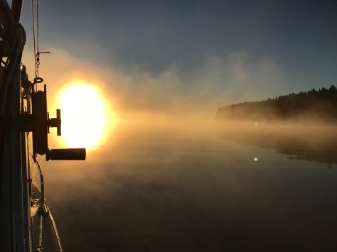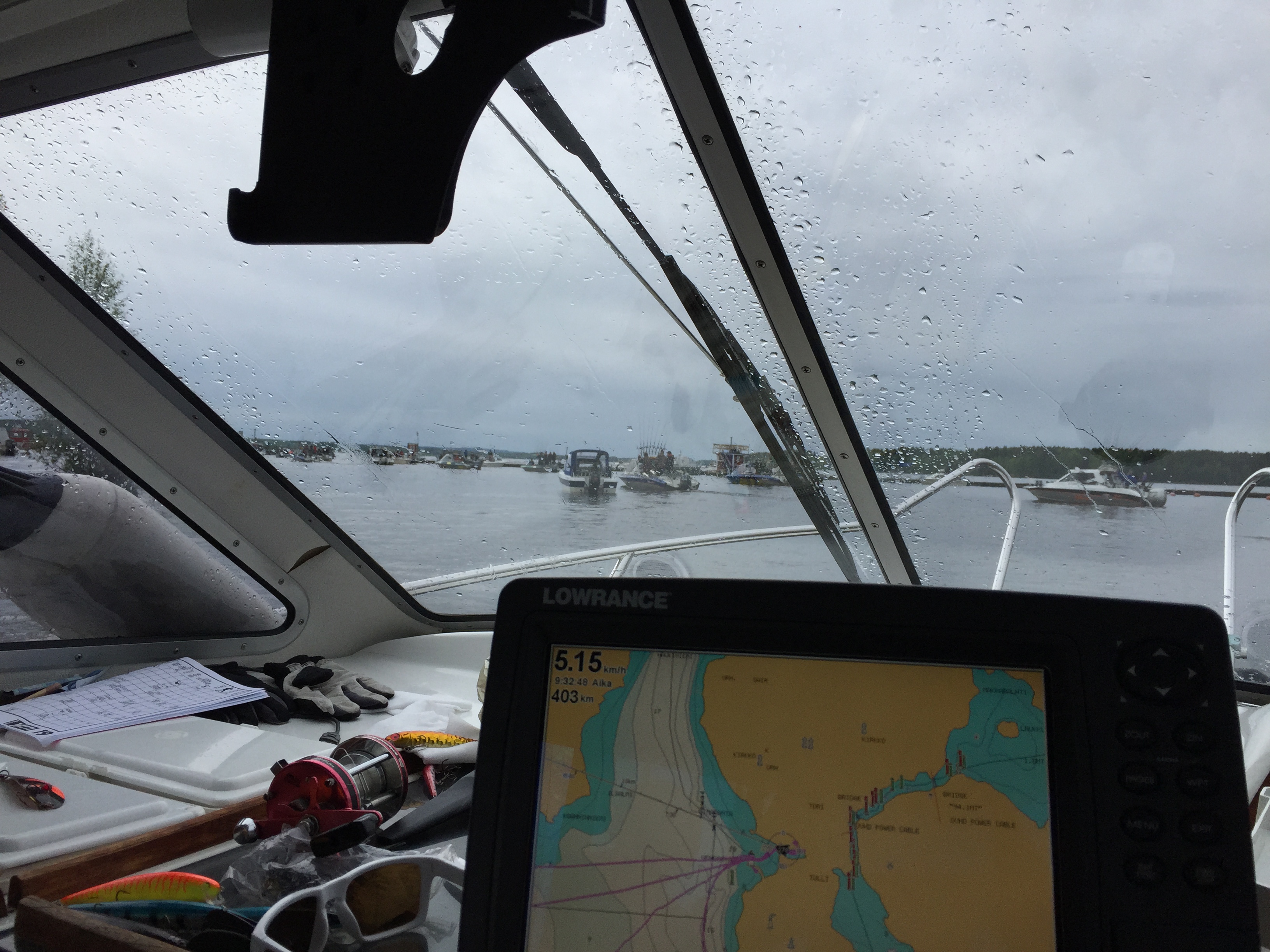 Ekana päivänä homma meni lähinnä uuteen totutellessa ja ihmetellessä ja kaloja ei meidän veneessä näkynyt, vetokin meni isolta osalta vähän paikkojen katseluun eikä mitään tiettyä aluetta jääty pyörimään. Rantaan lähdimme noin 23 aikoihin ja siitä veneen pakettiin laitto, niin kello lähentelikin jo puolta yötä. Tästä suuntasimmekin sitten kohti Långnäsiä koska Ana tuli esteiden takia päivän meidän jäljestä ja lautta olisi perillä yhden jälkeen. Tämän lisäksi Analla katkesi akillesjänne edellisellä viikolla, mutta eihän se ole syy jättää kalastureissua välistä. Ensimmäiset kysymykset lääkärin vastaanotolla olivat olleet että onnistuuhan Ahvenanmaan reissu ja onneksemme lääkärin mukaan tähän ei ollut estettä, kepit tietysti tuovat vähän lisäväriä touhutessa veneessä mutta kaikkeen tottuu. Saatuamme Anan kyytiin aattelimme käydä Maarianhaminasta pitsat, koska niillä suunnilla olimme. Onneksi oli sunnuntain vastainen yö ja paikallinen pitseria palveli pikkutunneille saakka. Lopulta olimme mökillä joskus puoli kolmen aikoihin ja pakkohan se oli vielä pitkän päivän päätteeksi alkaa puusaunan lämmitykseen, nukkumaan päästiin sitten joskus.