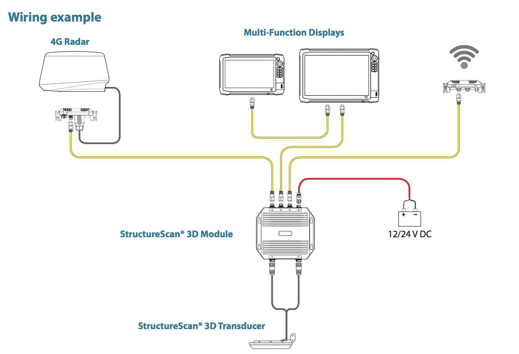 Kuvasta poiketen meillä ei ole oikean yläkulman go-free moduulia joten saamme molemmat näytöt suoraan kiinni kaikumoduuliin. Lowrancella 7″ näytöissä on yksi ethernet portti mutta isommissa näytöissä on kaksi porttia, näin ollen esimerkiksi 12″ näyttöön saa kiinni pienemmän näytön ja sen lisäksi esimerkiksi tutkan.
