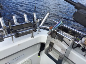 Ensimmäisenä oli vuorossa takiloiden asennus, vanhat Cannonit oli jo purettu pois ja tilalle tuli uudet Scottyt. Takiloiden vaihtoon innoitti suomalaisten kehittelemä pohjanseurantasovellus, Autotrolling, joka toimii myös Scottyn takiloissa. Pohjanseuranta oli aikanaan syy miksi vaihdoimme Scottyt Cannoneihin ja nyt kun se oli saatavilla myös Scottyihin niin vaihto niihin takaisin houkutteli. Autotrollingista ja sen asennuksesta juttua sitten myöhemmin käyttökokemusten kera! Takiloiden asennus sujui kohtalaisen nopeasti koska veneessä oli valmiina jo kaikki tarvittavat reiät niitä varten ja sähkötkin oli vedettynä valmiiksi entisten takiloiden jäljiltä.
