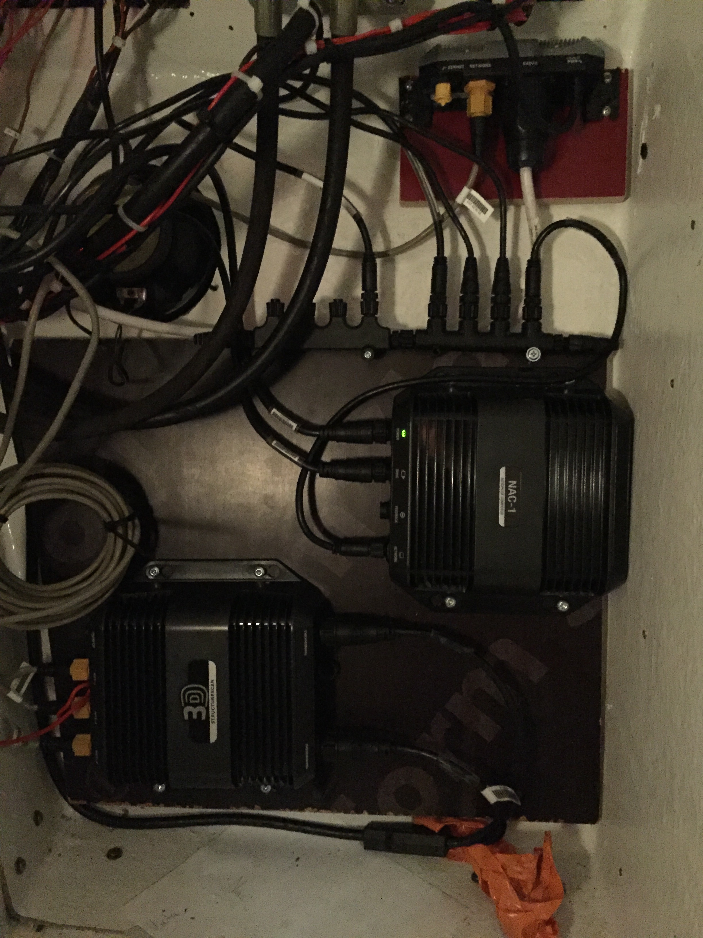 Kaikki laitteet veneessä ovat linkitettyinä toisiinsa, joko NMEA2000- tai Ethernet- verkossa ja osa laitteista ovat molemmissa. Näin laitteilta saatava data on molempien näyttöjen käytössä. Tähän olisi hyvä saada yksi standardisoitu verkko jossa liikkuisi kaikki tarvittava data, näin ollen eri merkkisten laitteiden yhdistäminen olisi helpompaa eikä veneessä tarvitsisi olla useampaa eri verkkoa. NMEA -verkossa liittyvät data on yksinkertaisempaa ja siellä liikkuu enemmän numerotietoa kuten esimerkiksi syvyydet ja vedenlämmöt. Ethernet verkossa liikkuu taas isompi data ja sen kautta laitteiden välillä pystyy siirtämään esimerkiksi luotainkuvaa ja tämä mahdollistaa myös pelkkien plotterilaitteiden käytön myös luotaimina jos verkosta löytyy yksi luotainominaisuuksilla varustettu laite, tämä siis edellyttää että laitteista löytyy ethernet liitäntä. NMEA -verkko tarvitsee toimintaansa virtaa, yksinkertaisimmillaan verkkoon tarvitsee yhden haaran virralle ja yhden laitteelle, verkon päissä pitää olla terminaattorit jotka sulkevat verkon. Verkkoon voi lisätä laitteita liittämällä väliin t-haaran josta lähtee sitten johto uudelle laitteelle, jos verkossa on paljon laitteita se voi tarvita myös lisäksi toisen virransyötön. Tällä hetkellä meillä oleva ethernet verkko on vain näyttöjen välillä, tässä tilanteessa riittää yksi kaapeli näytöstä toiseen. Ensi kaudeksi ethernet verkon laitteet tulevat lisääntymään tutkan ja 3d -kaiun myötä joten verkkoon tarvitsee Ethernet-hubin, uudessa kaikumoduulissa on valmiina 3 ethernet porttia joten sitä ei tarvitse erikseen hommata.